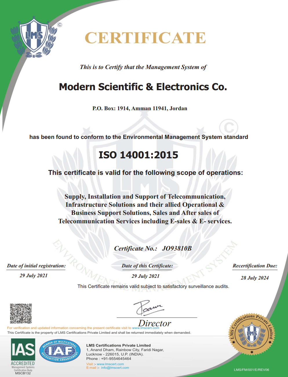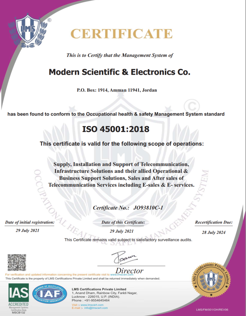 MOSECO group is a pioneer Company in the field of telecommunication infrastructure, smart solutions and renewable energy. It works to meet the requirements of customers and interested parties, protect the environment, minimize risks and prevent accidents, and meet international standards of quality, safety and environment according to the specifications: ISO 9001 – ISO 14001 – ISO 45001 through: